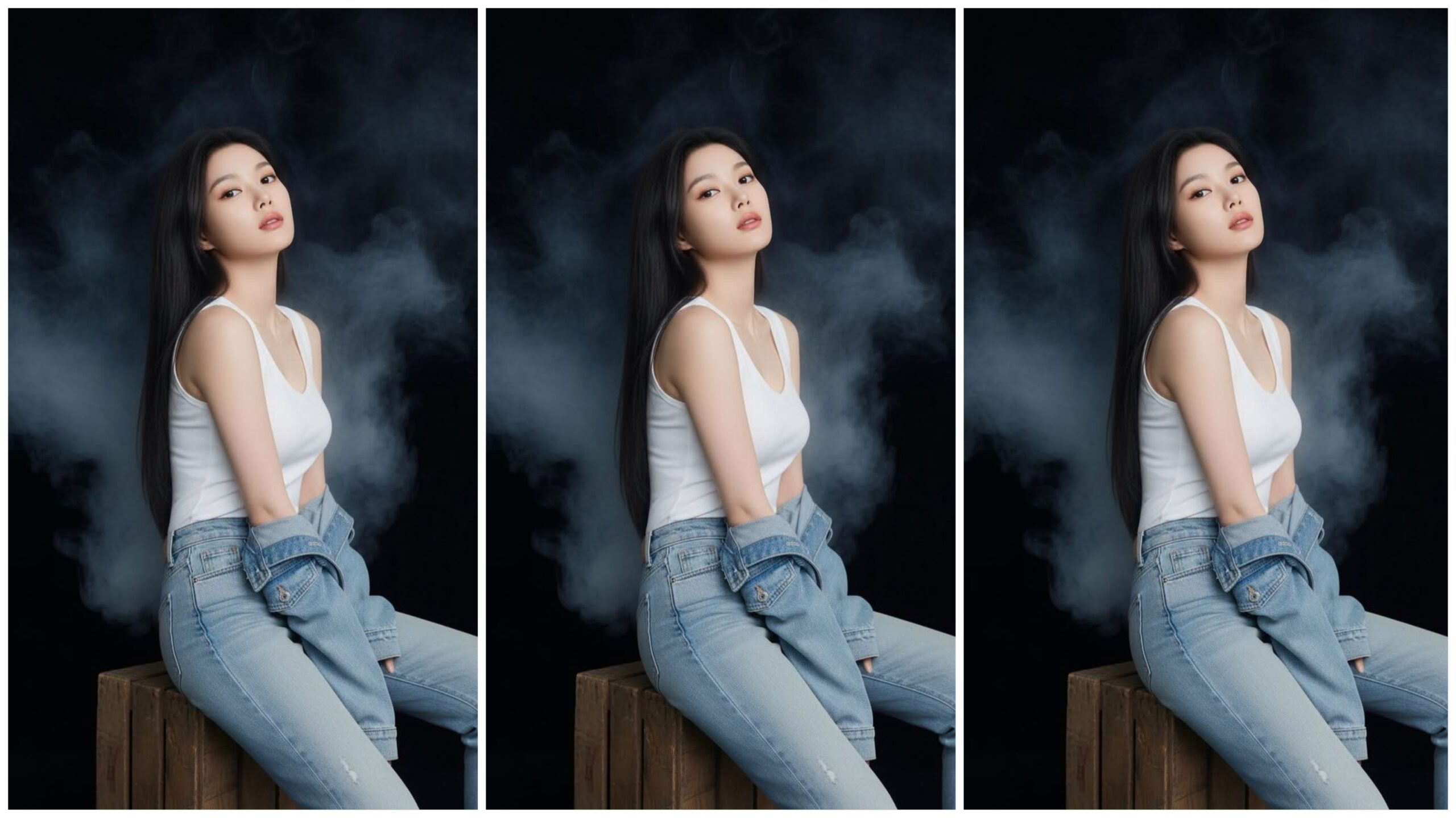 အောင်အေင်ကစကပ်အဖြူလေးကိုအပေါ်သို့လိပ်တင်ထားလိုက်ပြီး